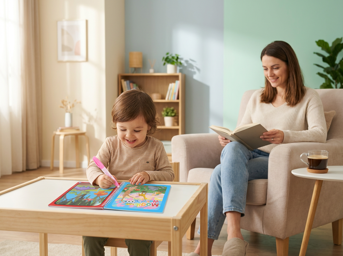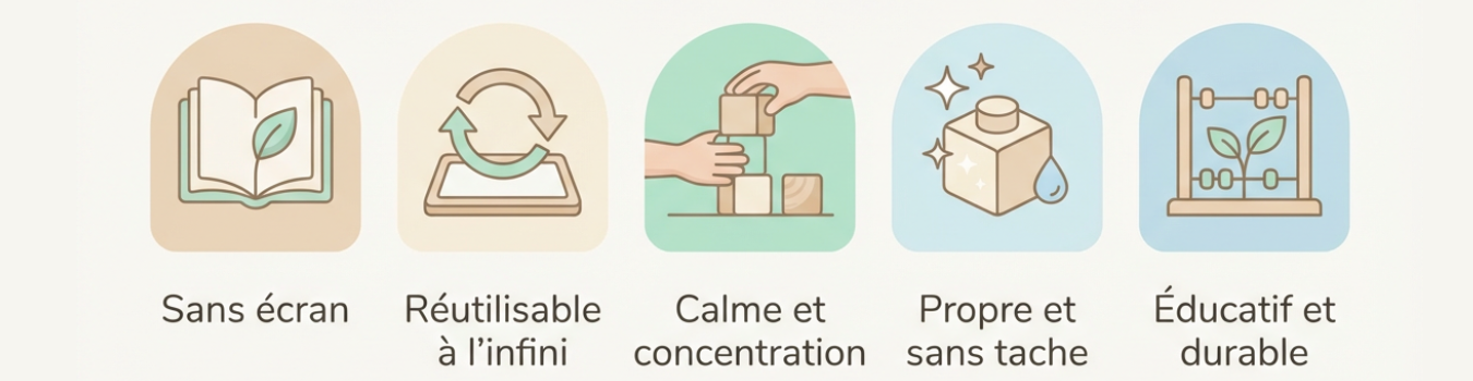 Nos livres de coloriage réutilisables sont conçus pour encourager la créativité des enfants, favoriser le calme et offrir aux parents une alternative éducative, propre et durable.